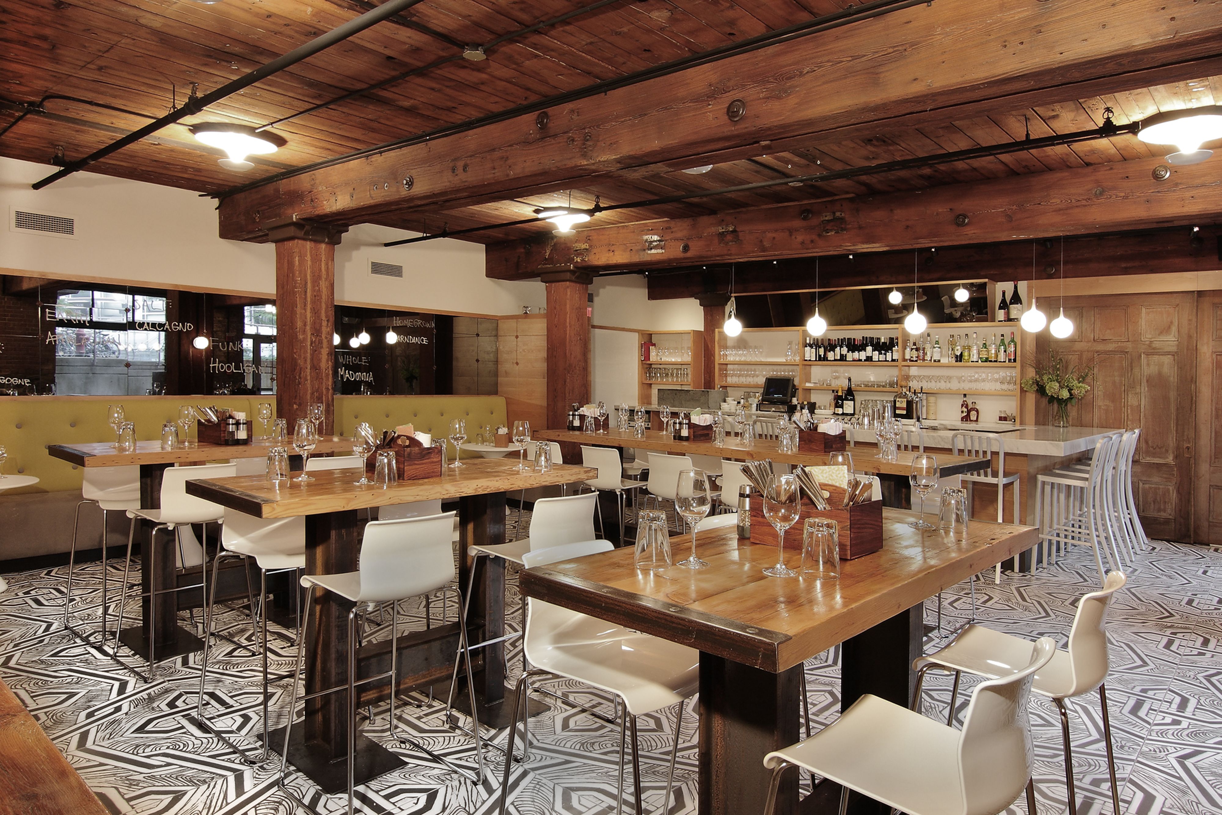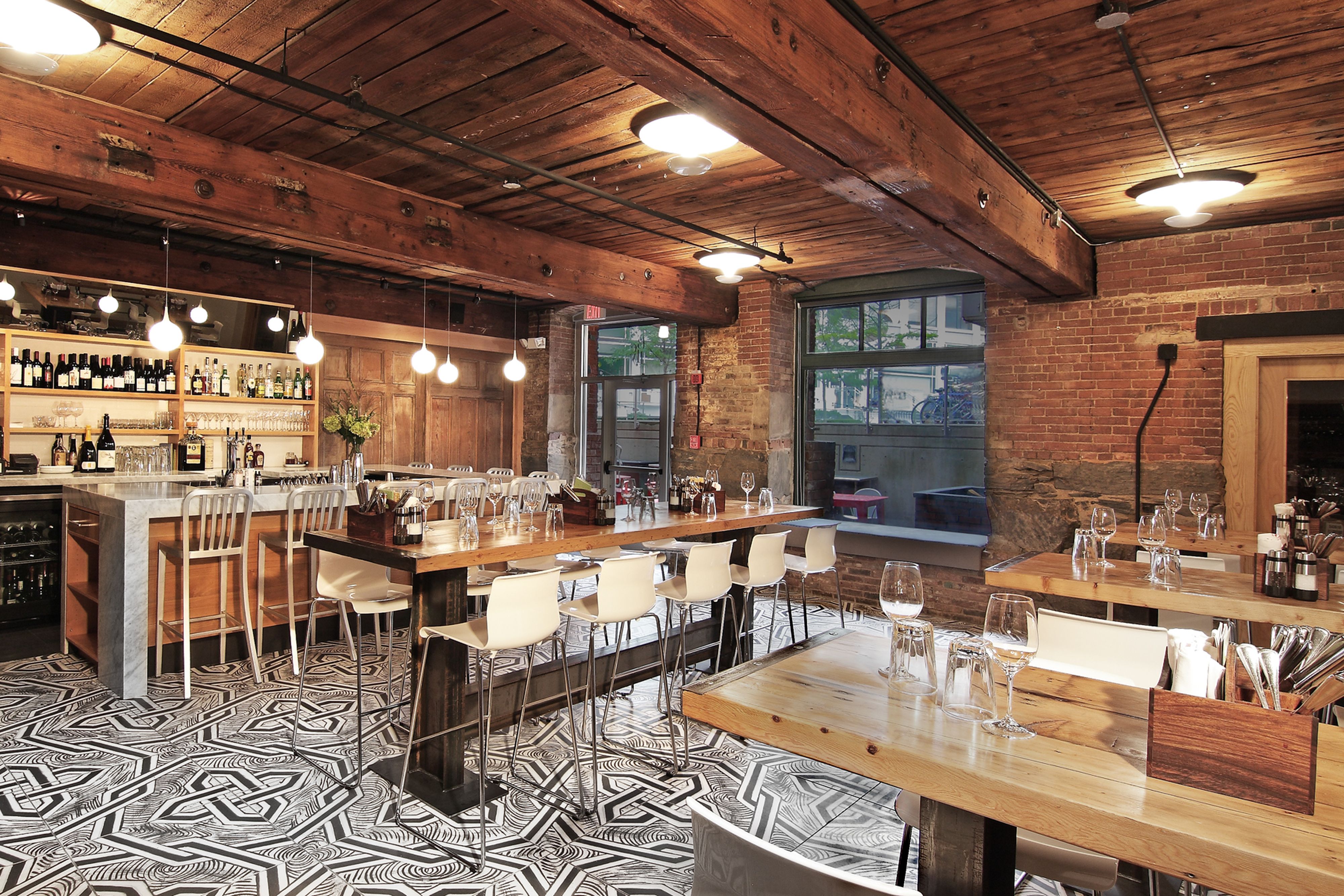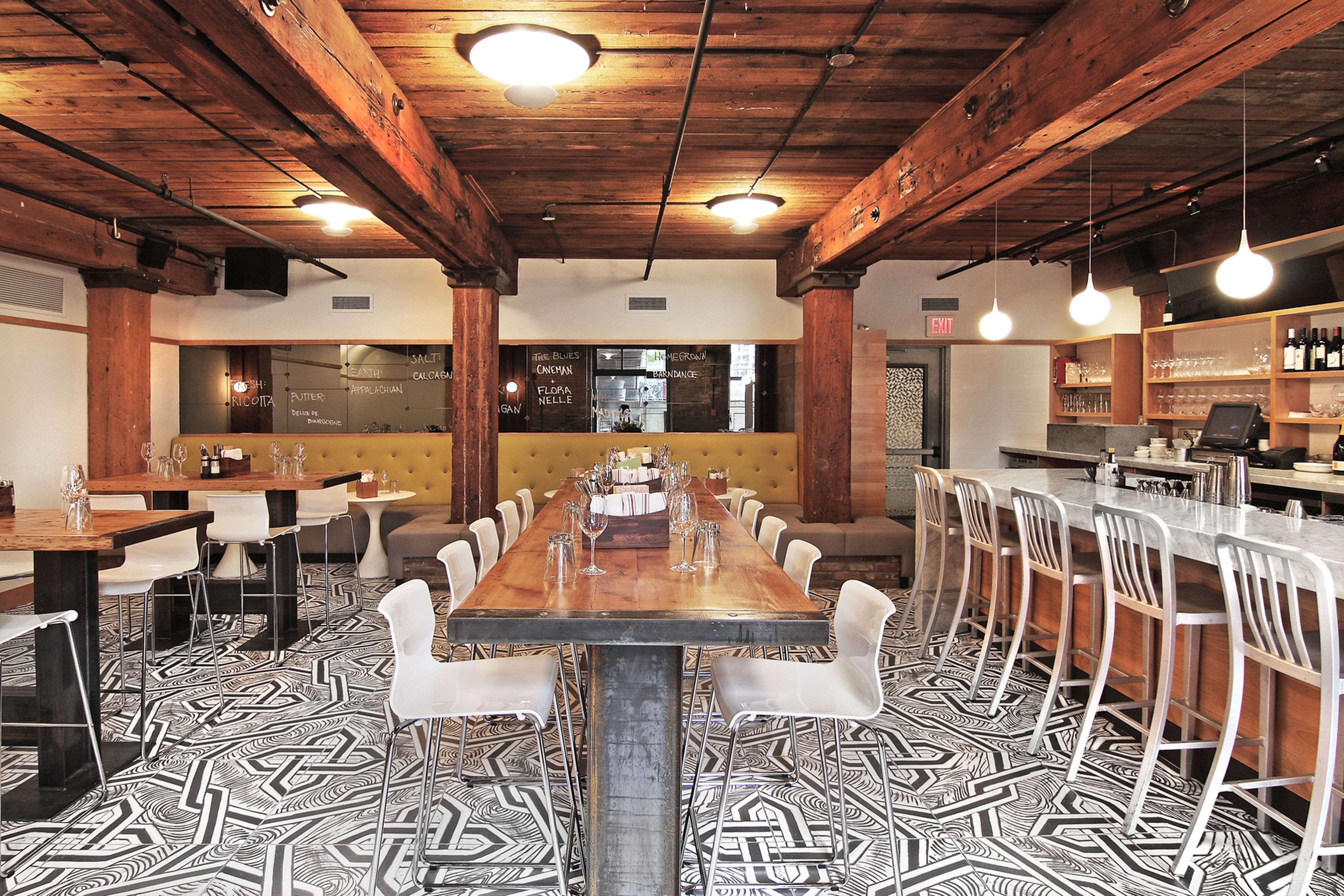 A contemporary space inserted into a 19th century American mill building, Belly embodies that experience while reflecting a lighthearted attitude towards the owners’ obsession with wine and charcuterie.